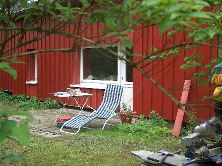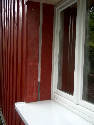 Die Außenhaut bildet eine 2 x 2o mm starke Verbretterung aus gehobelten Lärchenbrettern.