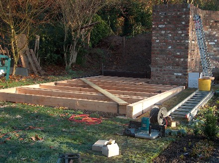 Die Fotoserie zeigt die Entstehung des Gartenhauses.